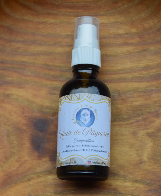 Voici l'huile de pâquerette, elle provient d'une macération solaire.